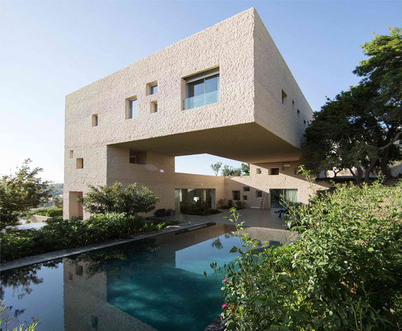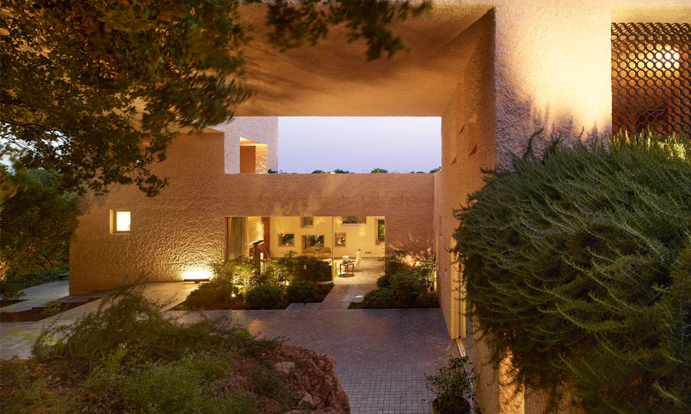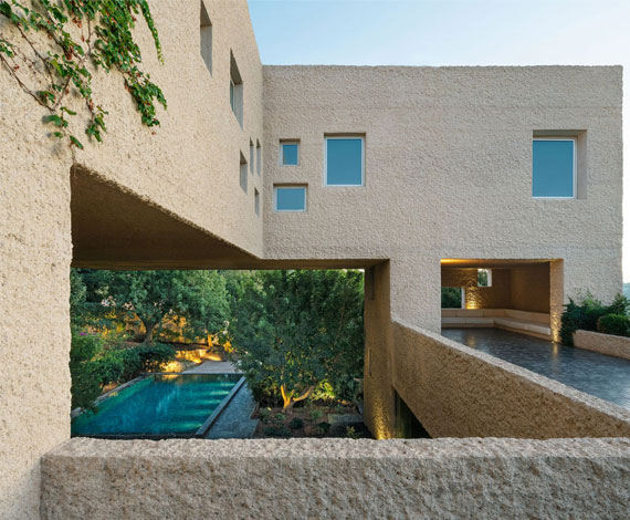 AJC also contributed to the design by proposing to replace the regular concrete mixture with a special mixture which included white cement thus producing the desired final look without having to paint the chiseled concrete, which would have been very difficult and would have produced a less natural feel to the “carved out of stone” vision.