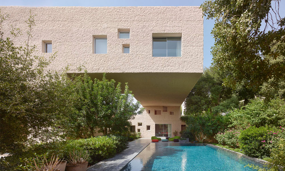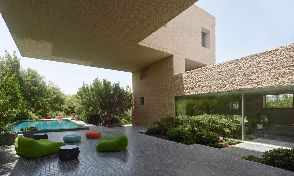 Flying Bedrooms! Yes! The second floor is flying in the air! HS Villa’s most prominent feature leaves anyone who visits the project in awe. The private family living space on the second floor is suspended in the air. Connected by a single tower on each end, the L-shaped living space (15x8m2 & 11x6m2) makes up the largest cantilever in the Middle East at that time.